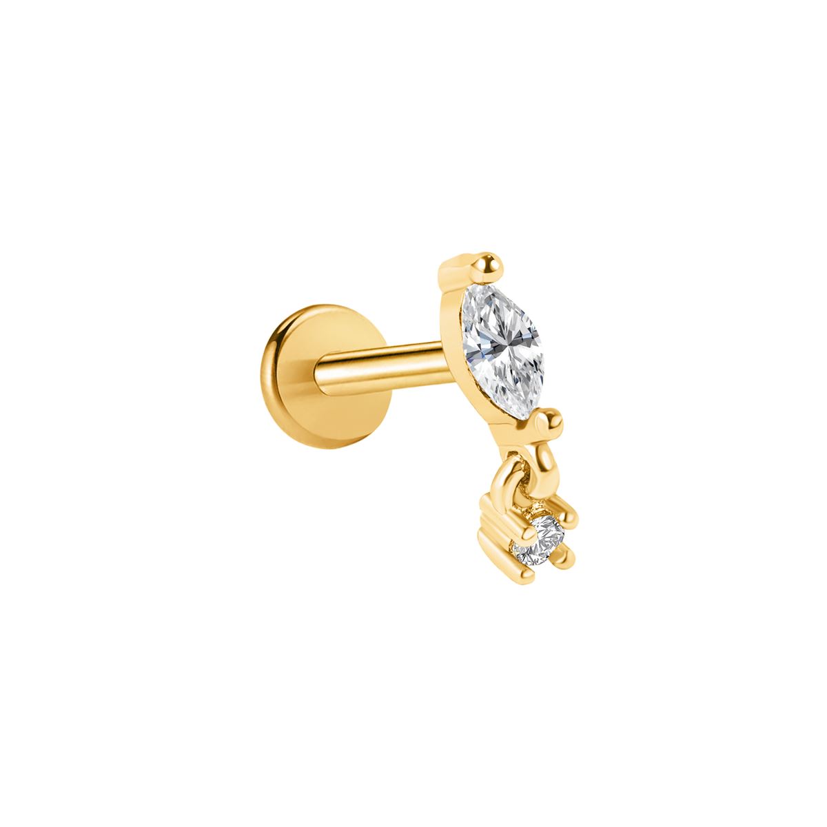 Labret/Tragus/Helix Piercing aus Chirurgenstahl-goldfarbig ovaler Kristall mit Anhänger