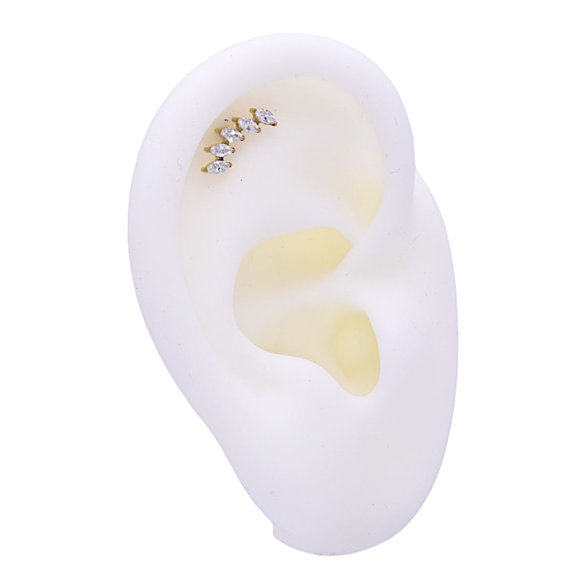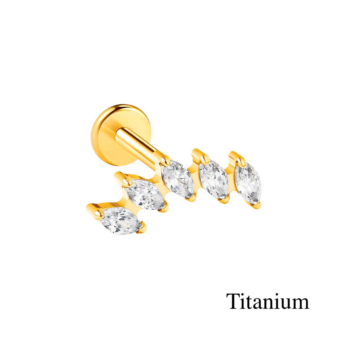 Labret/Tragus/Helix Piercing aus TITANIUM-goldfarbig mit 5 weißen Kristallen