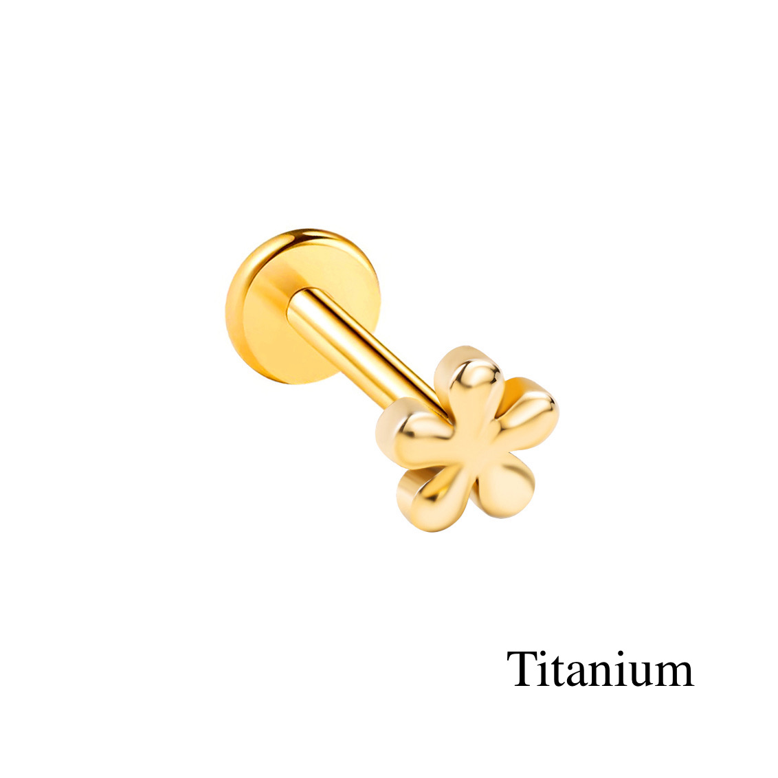 Labret/Tragus/Helix Piercing aus TITANIUM-goldfarbig mit einem Blumenmotiv