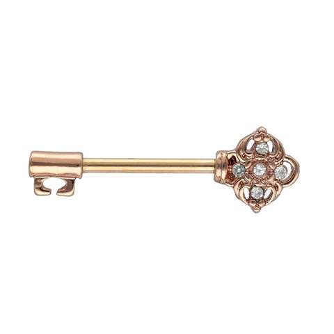 Chirurgenstahl nippelpiercing, rossgoldfarbig, Schlüssel mit verschiedenen weißen Kristallen