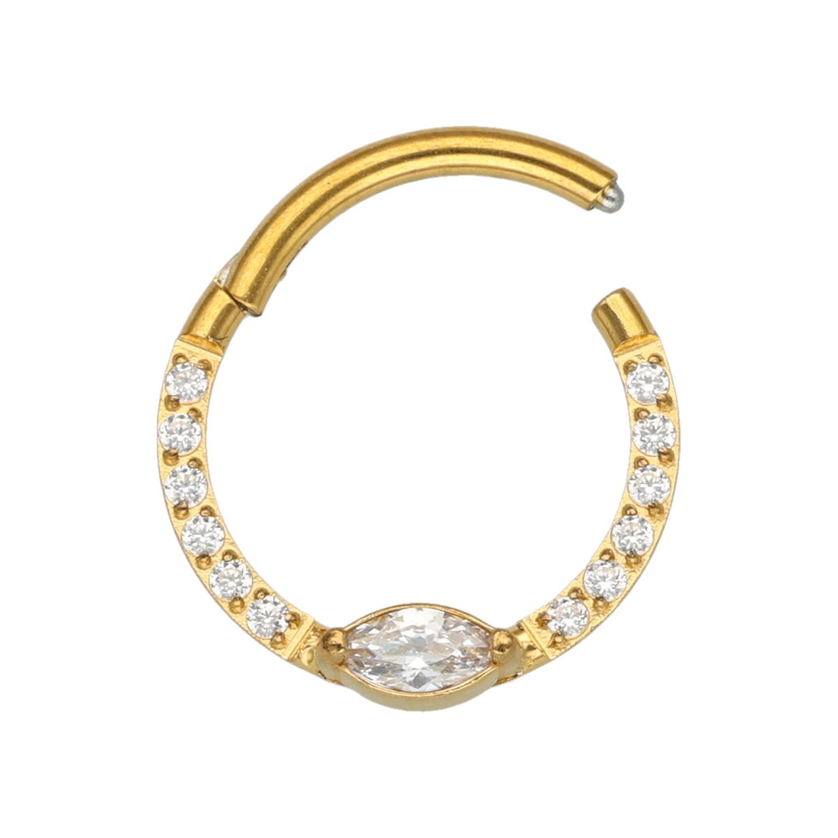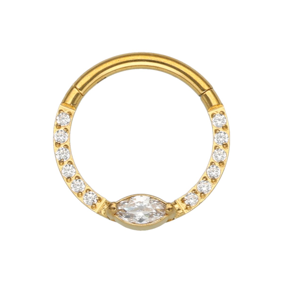 Chirurgenstahl Segmentring Clicker-goldfarbig mit weißen Kristallen bedeckt