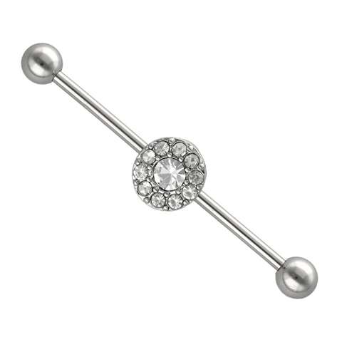 Industrial piercing aus chirurgenstahl, Motiv mit verschiedenen weißen Kristallen