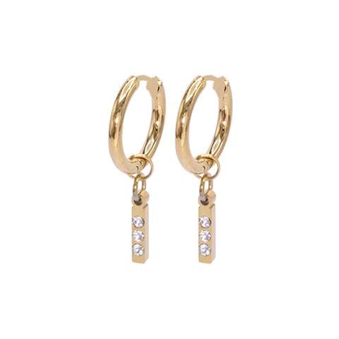 Geben Sie Ihrem Outfit einen Schub mit diesen Kreolen! Diese Ohrringe haben einen rechteckigen Anhänger und sind mit 3 weißen Kristallen besetzt. Kombinieren Sie diese schönen Ohrringe mit anderen Ohrringen / Piercings. Diese Ohrringe in der goldenen Farbgebung sind aus Edelstahl und nickelfrei, daher ist die Chance auf Verfärbungen gleich null! Die Ohrringe haben einen Durchmesser von 10 mm (von innen gemessen) und eine Dicke von 2 mm. Die Länge des Anhängers beträgt 10 mm.
