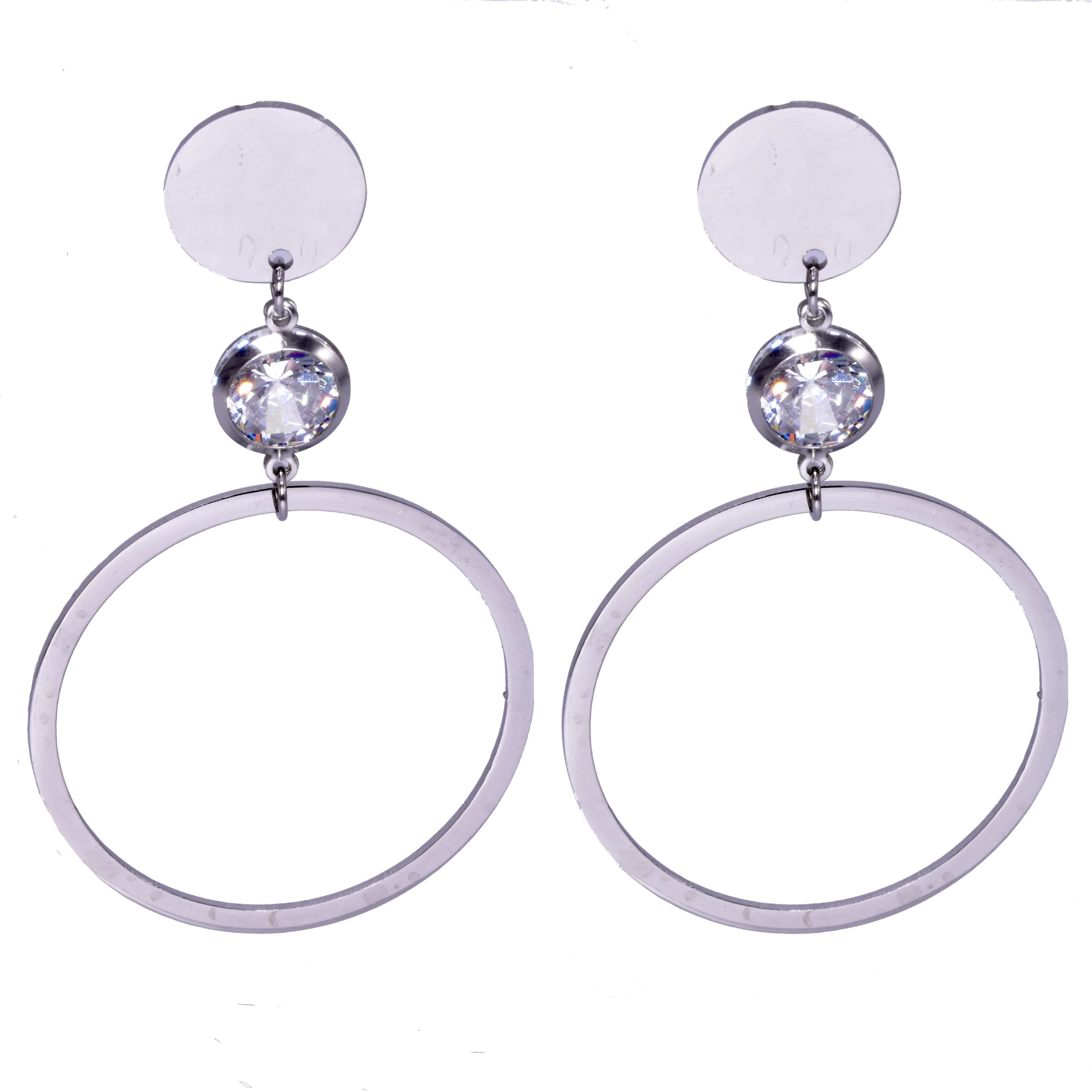Ohrringe aus Edelstahl, weißer Kristall mit einem Ring