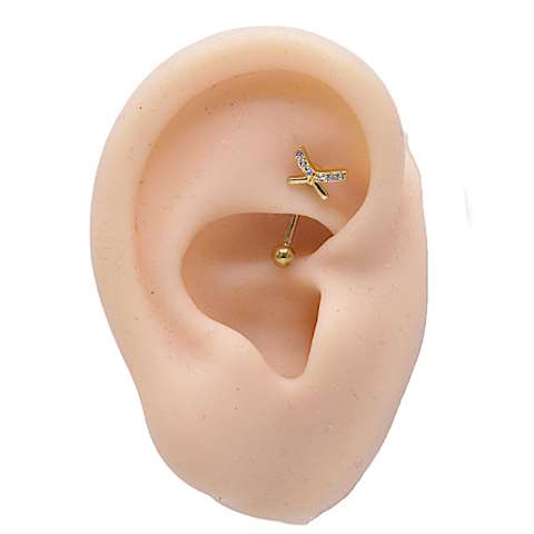 Rook Piercing aus Chirurgenstahl-goldfarbig Motiv gekreuzt