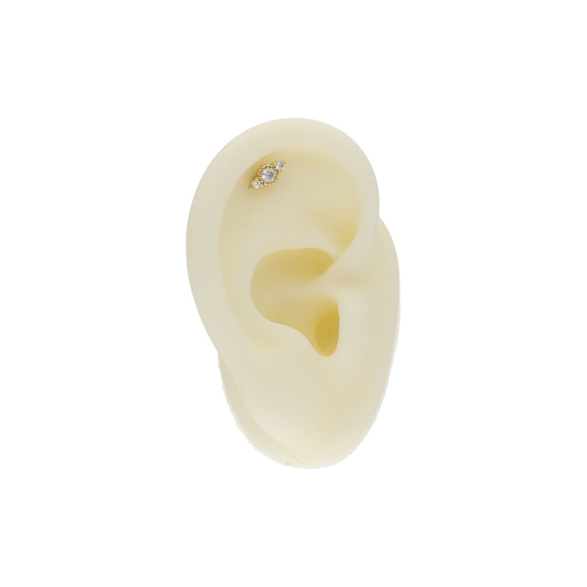 Labret-/Helix-/Tragus-Piercing aus goldfarbenem Chirurgenstahl mit 3 weißen Kristallen