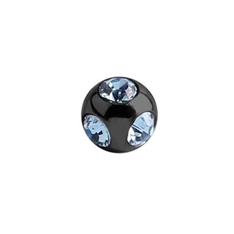 Ball in black chirurgical steel, multi-crystals turquoise