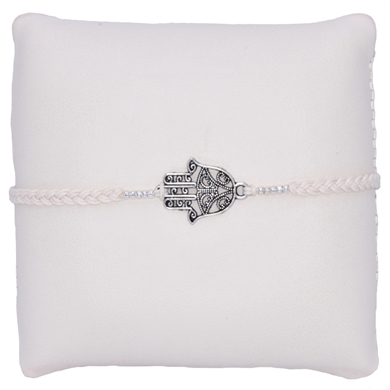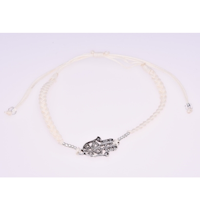 Beige-colored bracelet with a Hamsa motif in the middle! This bracelet is adjustable with a pull-tie closure and fits every wrist. Pull-tie closure simply means that you can easily take it off and on by pulling the cords! The length of the Hamsa hand is 20 mm.