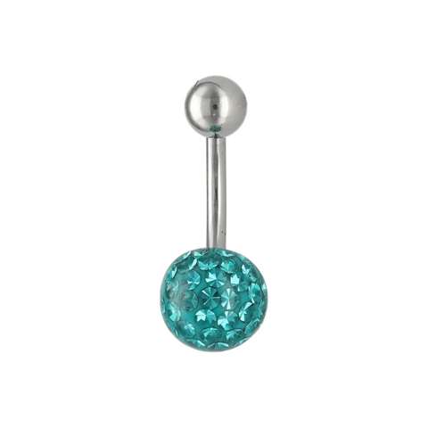 Belly ring in chirurgical steel, ball with epoxy resin, turquoise