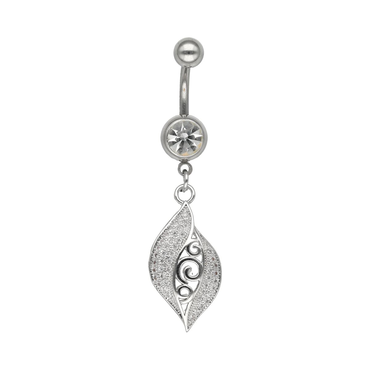 The bar and the removable ball consist of high-quality Surgical Steel 316L. The pendant is made of silvered brass. The navel piercing is available with a 1.6mm bar thickness and a 10mm bar length. The diameter of the ball is 5mm.