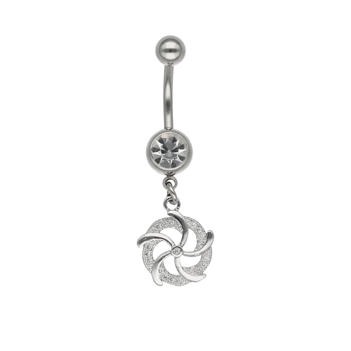 The bar and the removable ball consist of high-quality chirurgical Steel 316L. The pendant is made of silvered brass. The navel piercing is available with a 1.6mm bar thickness and a 10mm bar length. The diameter of the ball is 5mm. The diameter of the design is 13 mm.