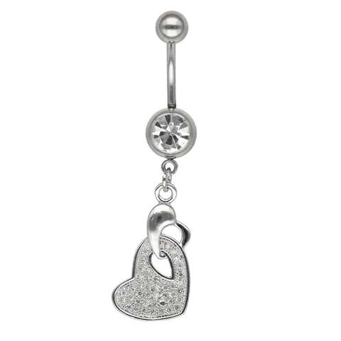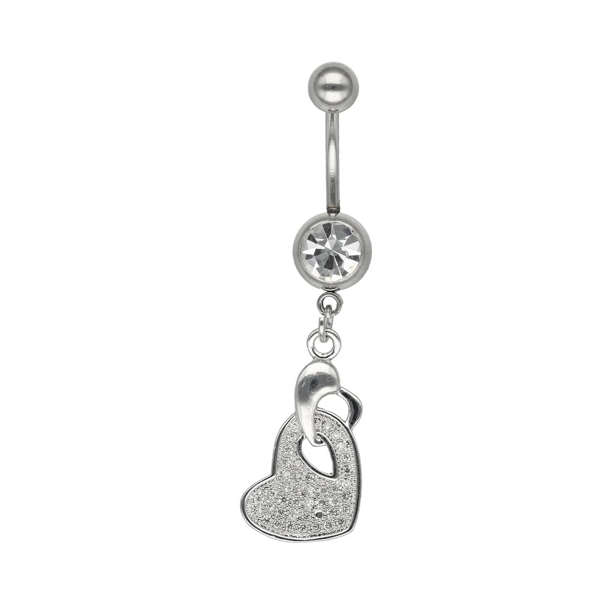Belly ring in surgical steel, heart with different small white crystals