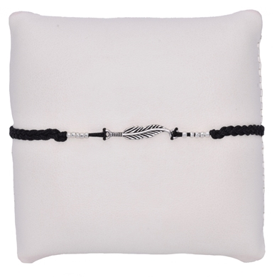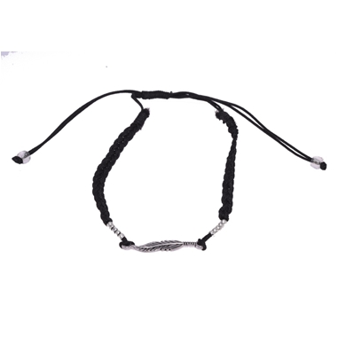 Black-colored bracelet with a leaf motif in the middle! This bracelet is adjustable with a pull-tie closure and fits every wrist. Pull-tie closure simply means that you can easily take it off and on by pulling the cords! The length of the leaf is 20 mm.