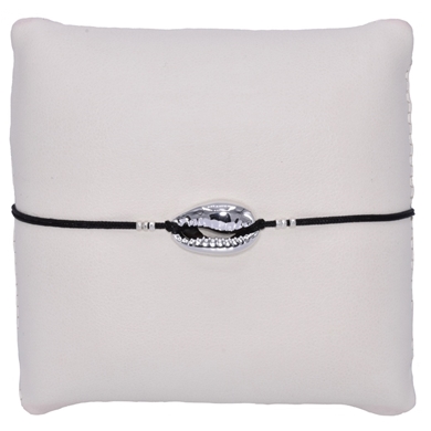 Black-colored bracelet with a silver shell in the middle! This bracelet is adjustable with a pull-tie closure and fits every wrist. Pull-tie closure simply means that you can easily take it off and on by pulling the cords! The length of the shell is 18 mm.