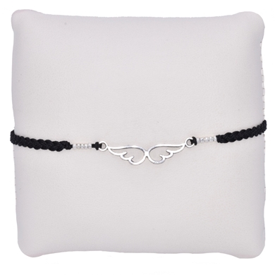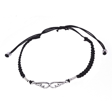 Black-colored bracelet with a wing motif in the middle! This bracelet is adjustable with a pull-tie closure and fits every wrist. Pull-tie closure simply means that you can easily take it off and on by pulling the cords! The length of the wings is 25 mm.