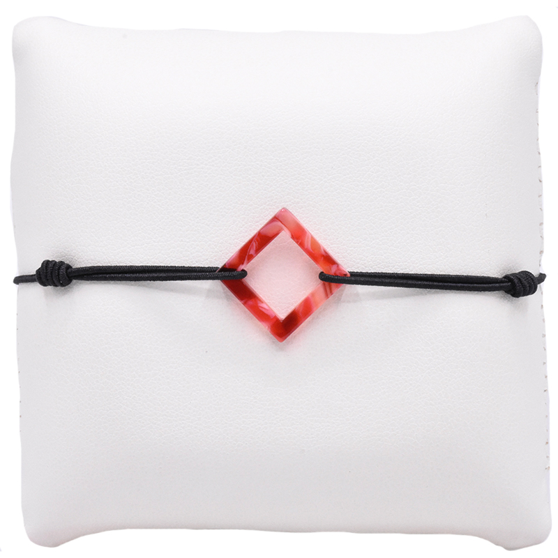 Black elastic cord bracelet with a open square motif in the middle! This bracelet is adjustable with a pull-tie closure and fits every wrist. Pull-tie closure simply means that you can easily take it off and on by pulling the cords! The diameter of the square is 15 mm.