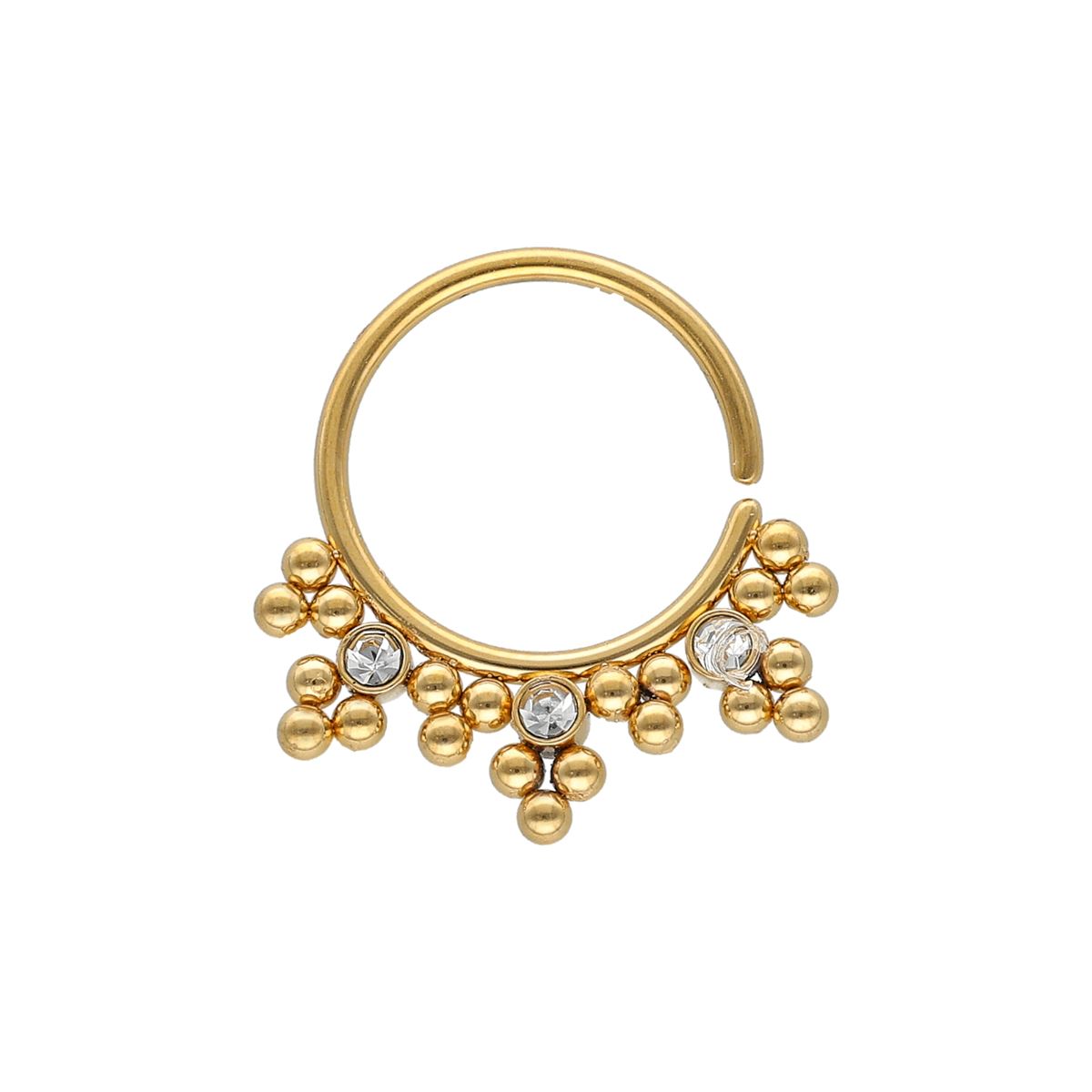 Continuous pliable ring in gold surgical steel with small balls and 3 white crystals