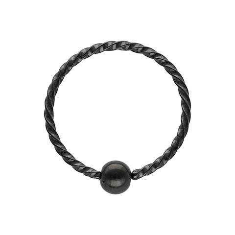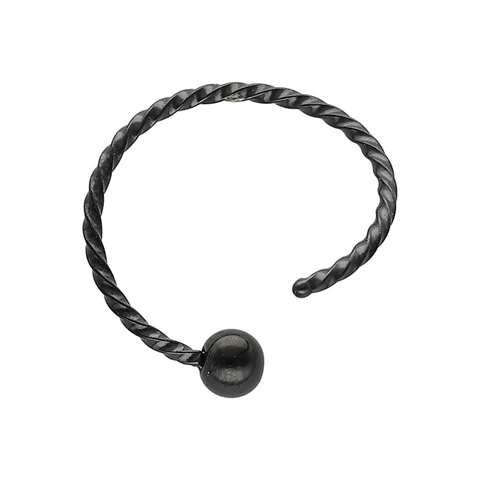 Continuous ring in black chirurgical steel with curved design and ball, pliable