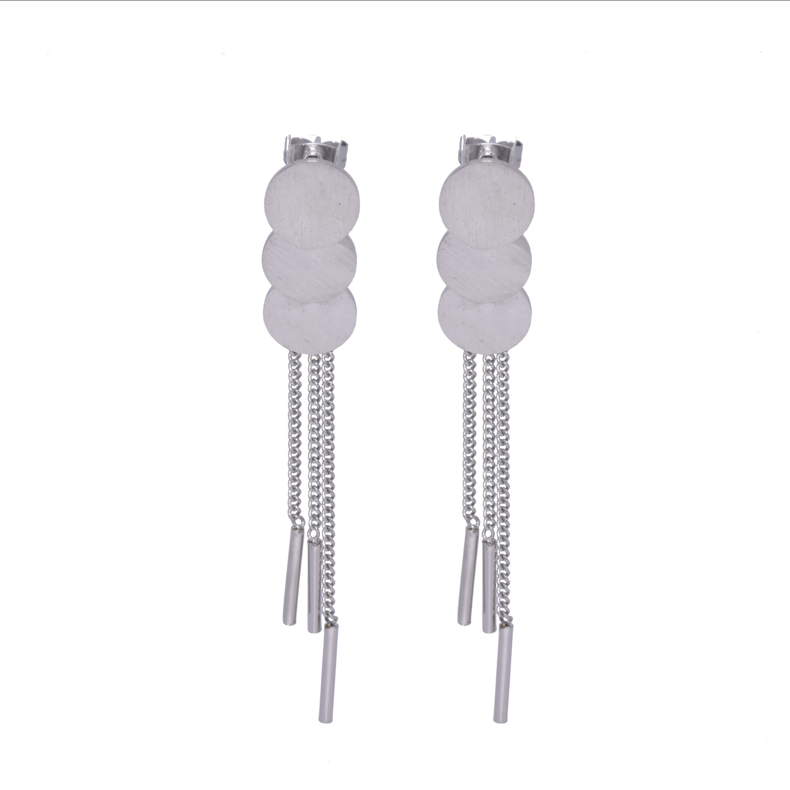Earrings/ear studs in surgical steel with 3 straight hangers