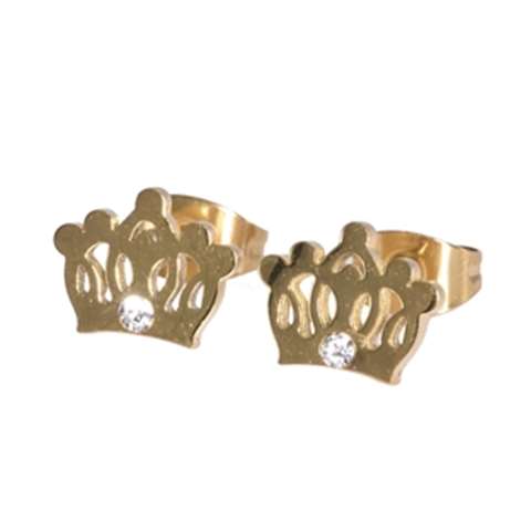 Earrings in gold chirurgical steel, crown with a small white crystal