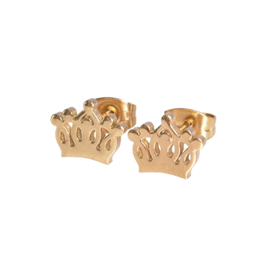 Earrings made in surgical steel with a gold-colored PVD coating. Due to the hardness of the steel the jewelry never or hardly distorts. Moreover, all our products from this range are very comfortable & safe to wear and of course nickel-free! The height of the crown is 7 mm and the width is 10 mm.