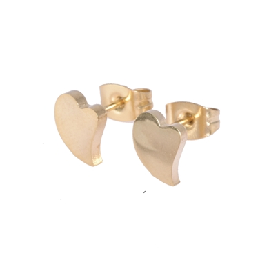 Earrings made in surgical steel and finished with a golden P.V.D coating. Due to the hardness of the steel the jewelry never or hardly distorts. Moreover, all our products from the range are very comfortable & safe to wear and of course nickel-free! The diameter of the heart is 8 mm.