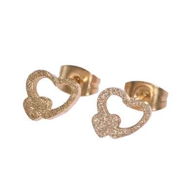 Earrings in gold "mat" surgical steel with an open heart