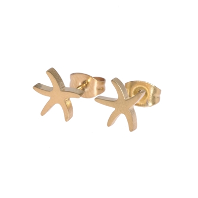 Stud earrings made in Surgical steel with a gold-colored PVD coating. Surgical steel is a material with many advantages over other metals. Surgical steel does not give off, does not discolour, is more durable and very important; anti-allergies so that irritations to the ears hardly occur anymore! Due to the hardness of the steel, the jewelry never or hardly deforms. Moreover, all our products from the range are very comfortable and safe to wear and of course nickel free! The diameter of the starfish is 8 mm.