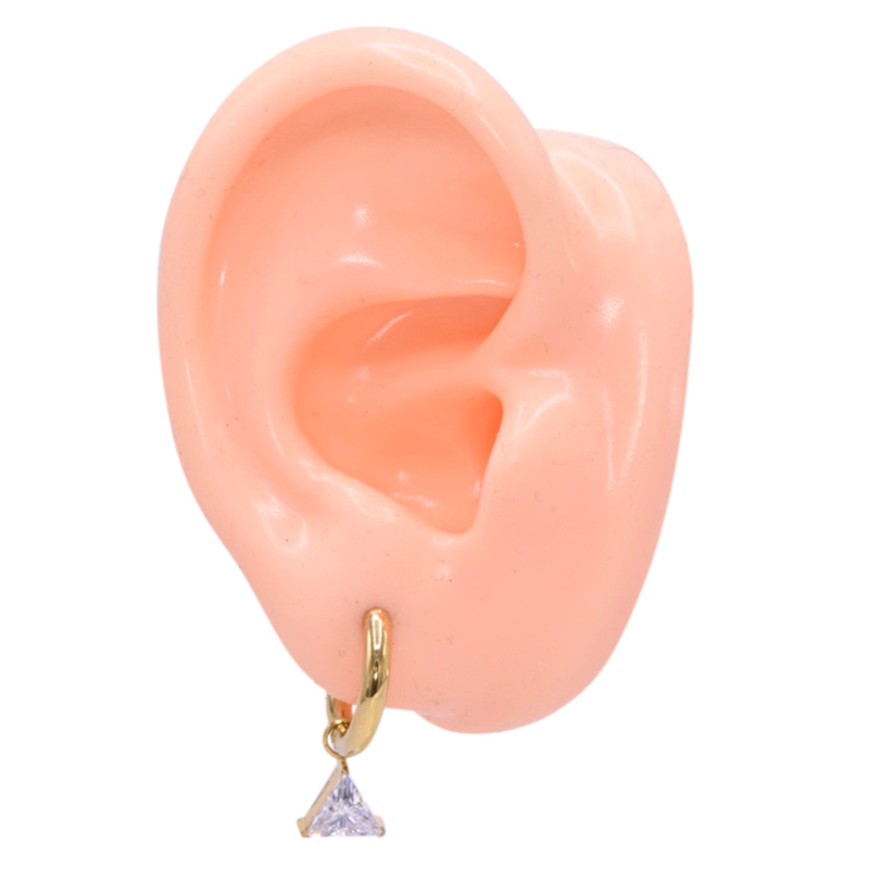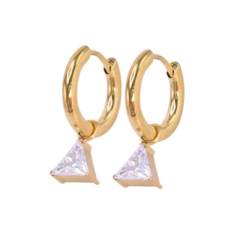 Earrings in gold surgical steel with a white triangle swarovski crystal