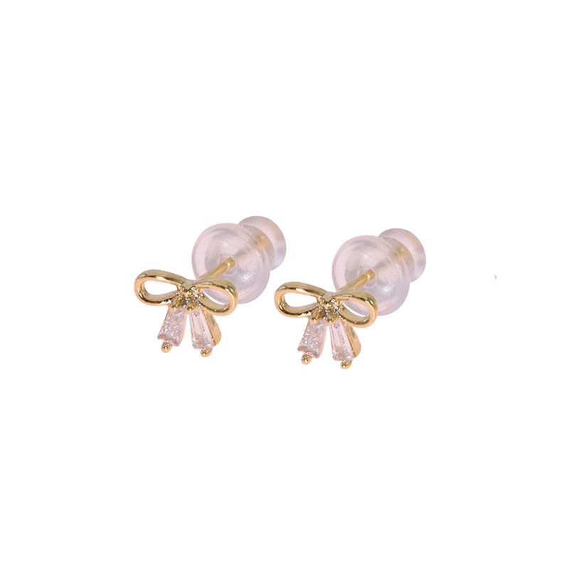 Earrings in silver 925%-gold plated with a ribbon and white crystals