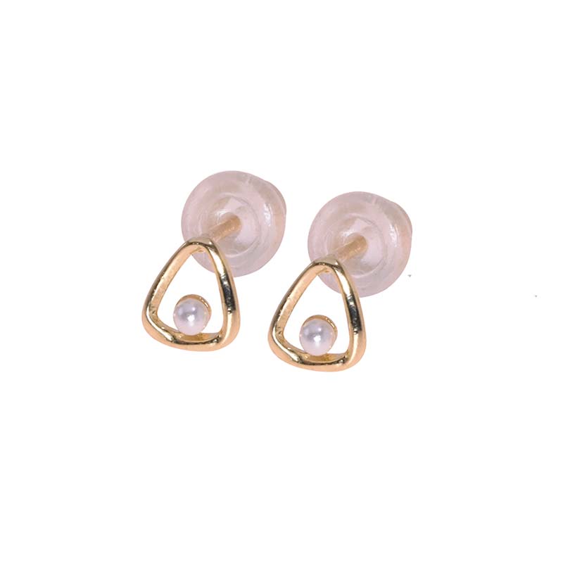 Earrings in silver 925%-gold plated with a triangle and a small white pearl
