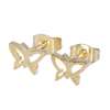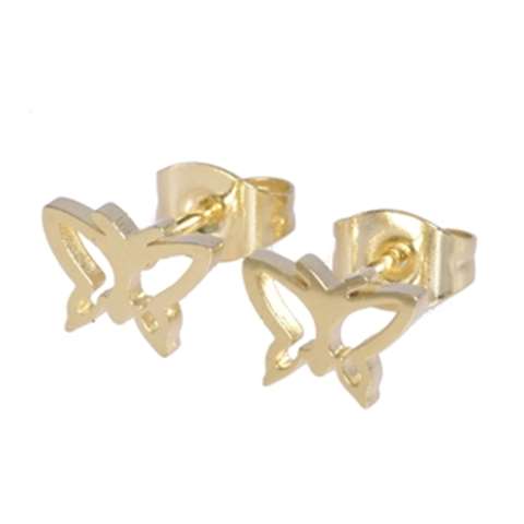 Earrings in steel, gold colored with a butterfly