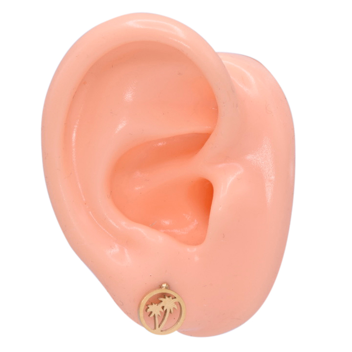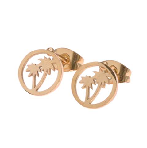 Stylish steel stud earrings covered with a gold colored PVD coating.