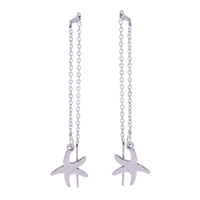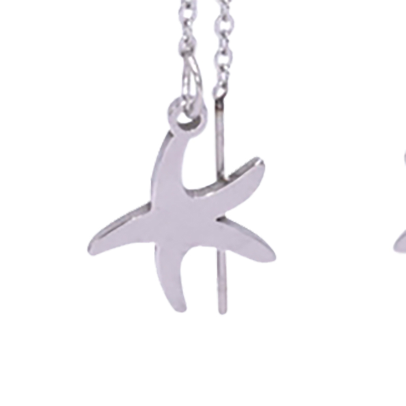 Silver-colored earrings chain made of steel so that it does not discolour or irritate the ears. Fashionably swinging, these earrings are an absolute eye-catcher for any outfit. A great ear jewel that should not be missing in any jewelry box! The diameter of the starfish is 10 mm.