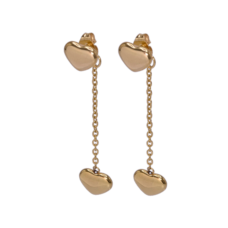Earrings in surgical steel-gold colored-heart with a chain