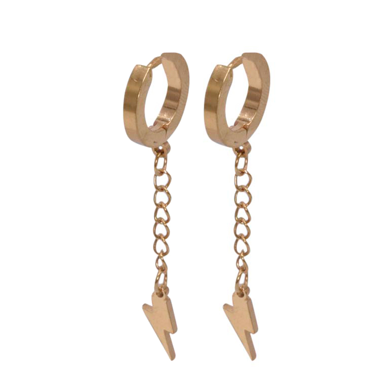 Earrings in surgical steel-gold colored-with a chain and a lightning motif