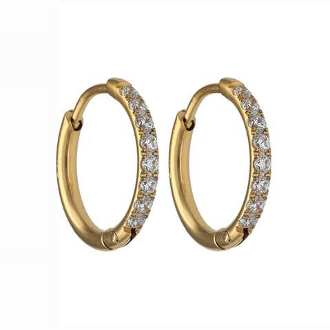 Earrings in surgical steel-gold colored with white crystals