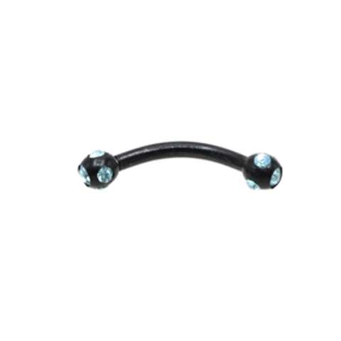 Eyebrow in black chirurgical steel, multi crystals turquoise