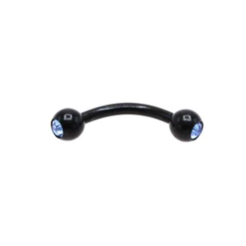 Eyebrow in black chirurgical steel with balls and light blue crystals