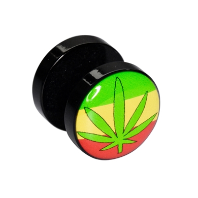 Fake plug in acrylic, cannabis rasta, diameter 14mm
