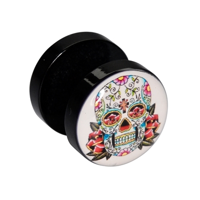 Fake plug in acrylic, skull with flowers, diameter 14mm