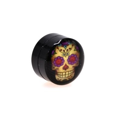 Fake plug in steel, magnetic, skull with black background