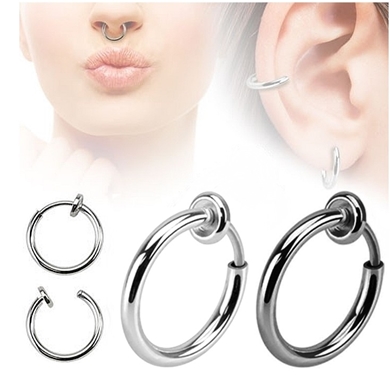 Our new fake ring is made of high-quality surgical steel 316L, has a colored PVD coating and is perfect for those who only want to temporarily wear a piercing ring. Thanks to sophisticated sliding mechanism, the ring can be easily attached to the ear, lip or nose, the small plate provides the necessary support at the desired location. The ring has a bar thickness of 1.2 mm and is availabke in diameters of 8 mm or 10 mm.