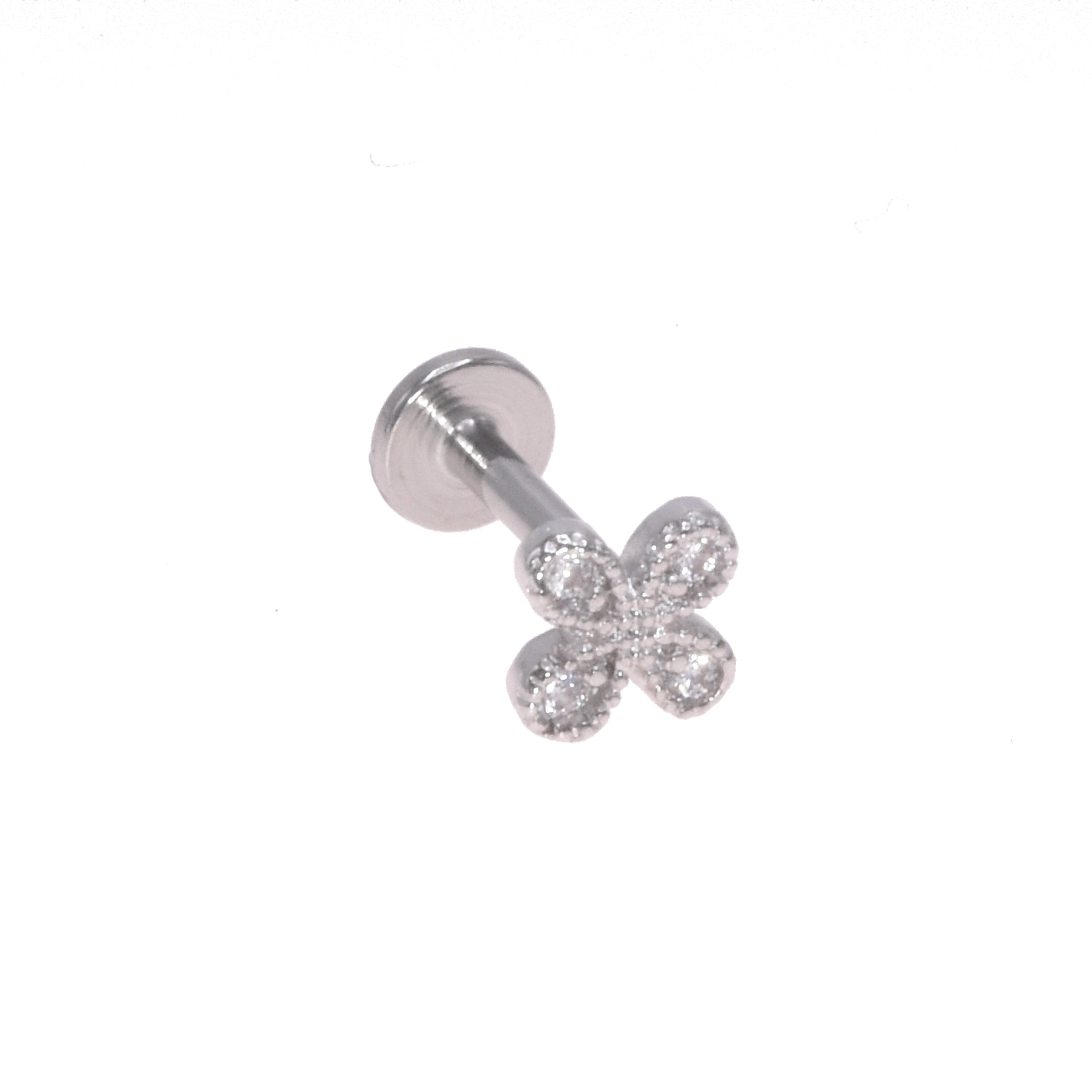 Helix/tragus/labret piercing in surgical steel, motif with different white crystals