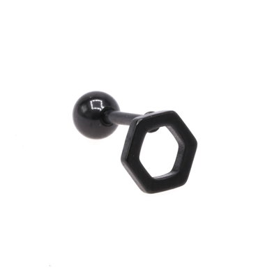 Helix/tragus piercing in black chirurgical steel, pentagon