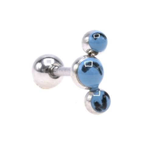 Helix/tragus piercing in chirurgical steel, 3 balls with blue stones, ref1