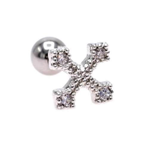 Helix/Tragus piercing in chirurgical steel, cross with crystals