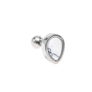 Helix/tragus piercing in chirurgical steel, drop white marble stone