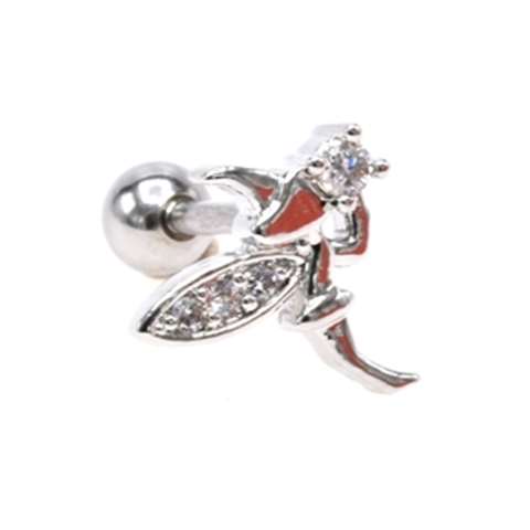 Helix/tragus piercing in chirurgical steel with fairy and inlaid crystals. Diameter around 10mm.