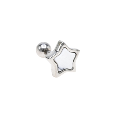 Helix/tragus piercing in chirurgical steel, star white marble stone